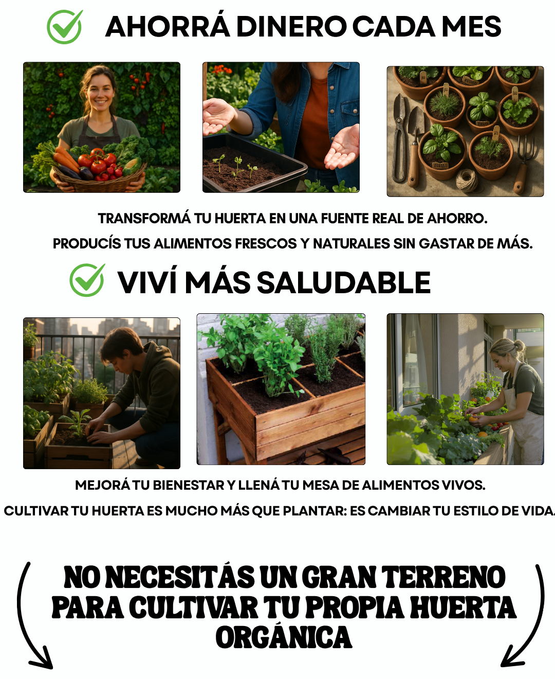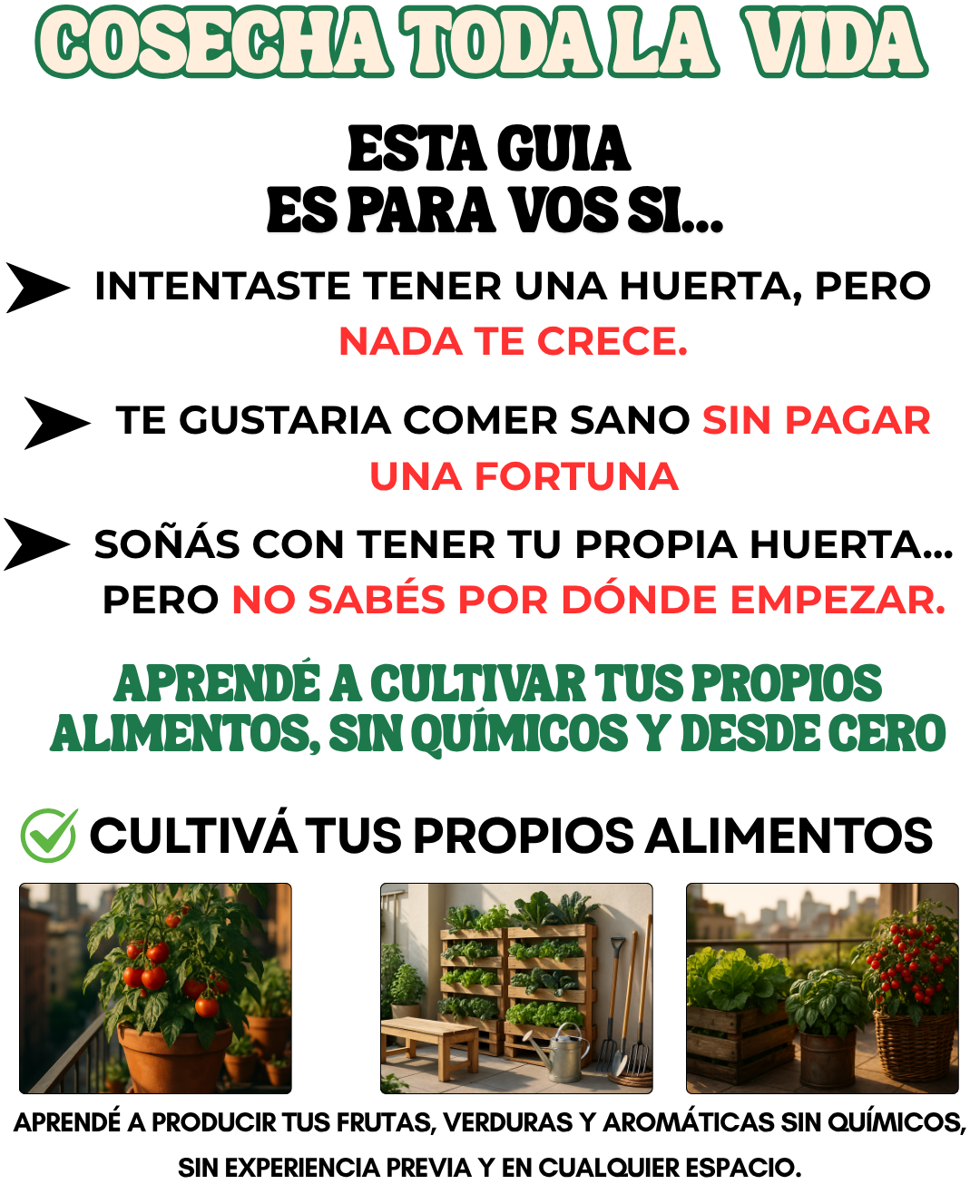 Carlos G. ★★★★★ Vivo en departamento y logré montar una mini huerta orgánica. El paso a paso es muy claro y los videos ayudan muchísimo.
